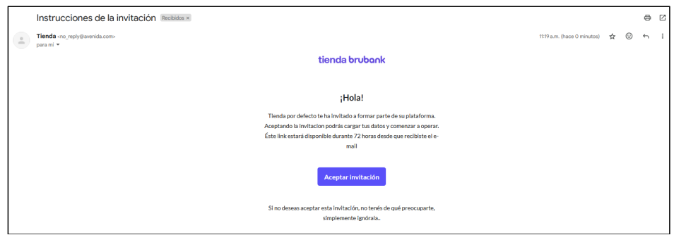 2. Recibirán el siguiente mail al correo compartido anteriormente.