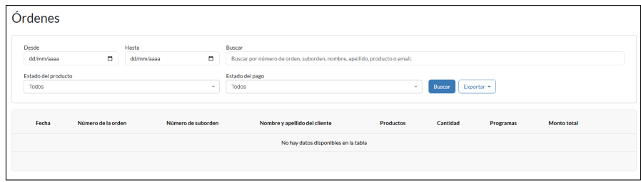 2. Filtros de órdenes: